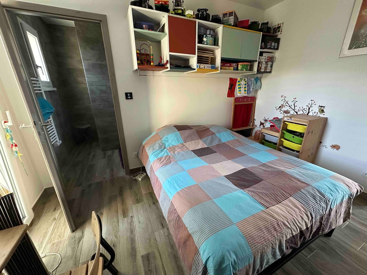 Diese ruhige Unterkunft bietet einen erholsamen Aufenthalt für die ganze Familie in einem typischen elsässischen Haus mit allem Komfort in einem 40 m2 großen Raum, der mit Glasfaser ausgestattet ist, mit einem eigenen Bürobereich. Ein Schlafzimmer mit einem Doppelbett 160*200 und einem Schlafsofa für 2 Personen. Wir können auch ein Babybett zur Verfügung stellen. Kostenlose Parkplätze. In der Nähe der 3 Grenzen (Deutschland, Schweiz, Frankreich), 12 Minuten vom Flughafen, 20 Minuten von Basel, 45 Minuten von den typischen elsässischen Dörfern entfernt.