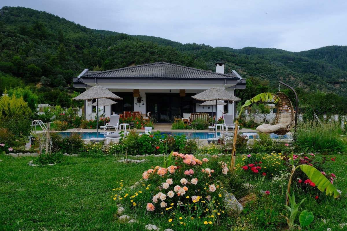 Unsere 250 qm freistehende, einstöckige Villa mit Pool in Elmalı Village, in der Region Akyaka-Gökova Bay, befindet sich auf einem 1200 qm großen Grundstück und sein Bau wurde im Mai 2023 abgeschlossen. Das Zentrum von Akyaka ist 10 Kilometer vom Kite Surf, Sea und Azmak River entfernt. Nachdem du friedlich mit den Geräuschen von Vögeln und Hähnen in den Bergen und Wäldern aufgewacht hast, kannst du dich dem lebendigen Leben von Akyaka anschließen. Auch 2 km zum Markt; es ist 4 km von den Bedürfnissen wie PTT, Geldautomat, Gesundheitszentrum entfernt.