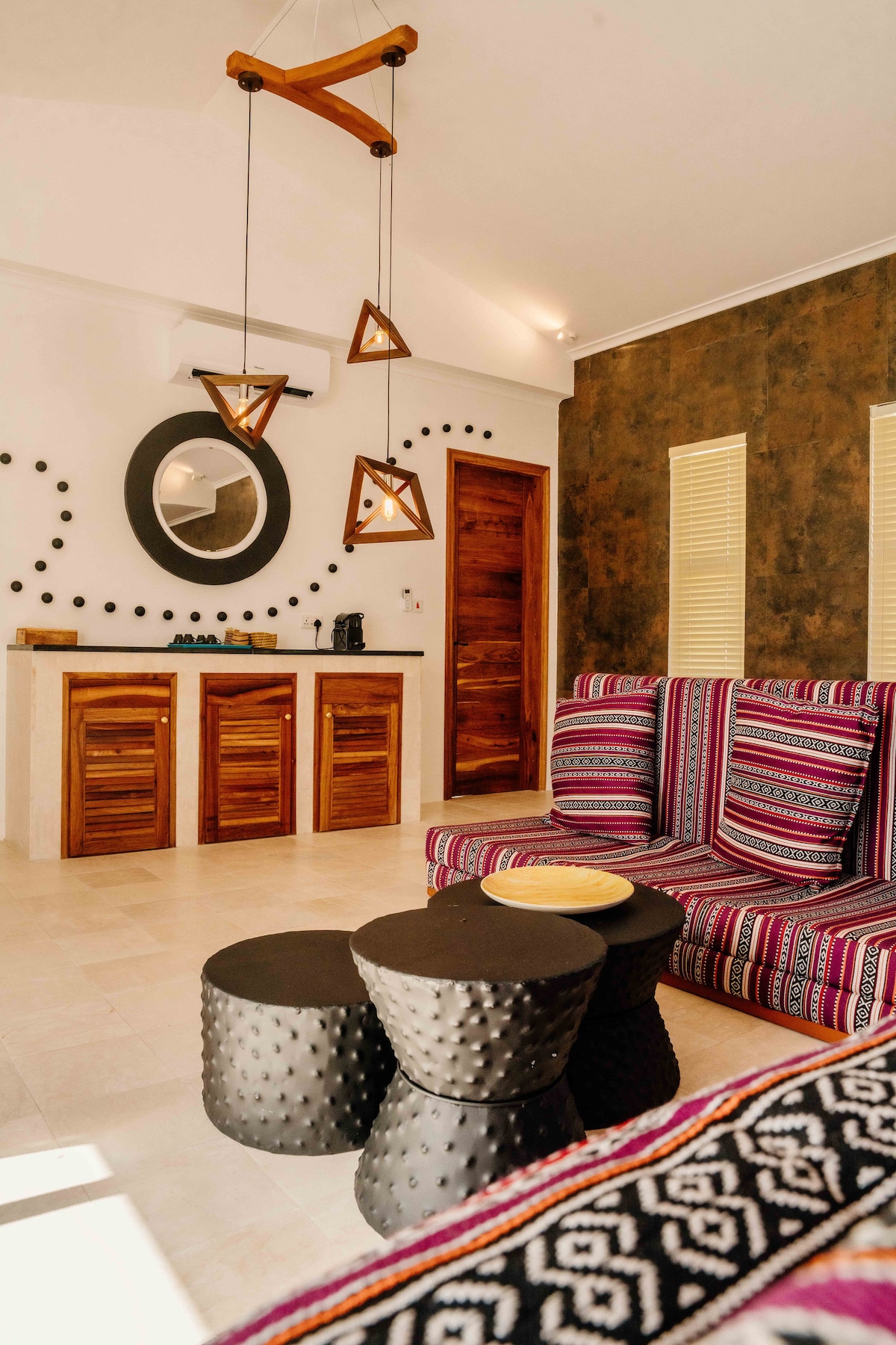 Betrete dein eigenes Paradies mit dieser atemberaubenden Villa mit einem Schlafzimmer, die sich am Strand befindet, nur wenige Schritte vom Meer entfernt. Wache mit dem Rauschen der Wellen auf und spüre den Sand unter deinen Füßen, nur wenige Schritte nachdem du deine Tür verlassen hast. Diese Villa verbindet traditionelle afrikanische Eleganz mit modernem Komfort und ist einzigartig mit handgefertigten kulturellen Hölzern und natürlichen Materialien dekoriert, die die Schönheit und das Erbe der Region widerspiegeln.