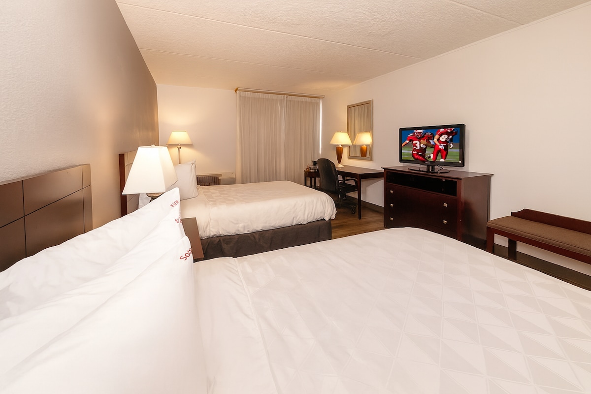 Vermeide den Verkehr und bleibe nur 1,6 km vom Flughafen Newark entfernt – kostenloser Shuttle rund um die Uhr inklusive. Du bist 12 Meilen von NYC, 6 Meilen vom Jersey Gardens Outlet und 3 Meilen vom Prudential Center entfernt. Beginne deinen Aufenthalt mit einem warmen Keks, hol dir einen Kaffee von Starbucks in der Lobby oder entspanne dich am Innenpool. Jedes Zimmer verfügt über einen Minikühlschrank, kostenfreies WLAN und Zugang zum Fitnesscenter rund um die Uhr. Mit Speisen vor Ort und EV-Ladestation macht dieser Ort deine Reise nach Newark einfach und unkompliziert.