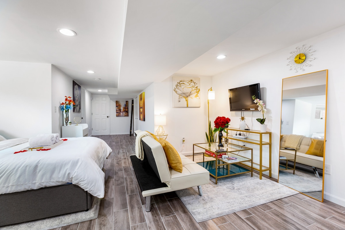 Strategisch gelegen für Reisen & Freizeit** **Einfache Anbindung an NYC** Genieße die Privatsphäre in unserer gemütlichen Zwei-Zimmer-Suite mit Küchenzeile und Bad in einem schönen, sicheren und ruhigen Viertel. In der Nähe von 3 NJ Transit Bahnhöfen (7-15 Minuten Fahrt, 35-50 Minuten nach NYC), einem Golfplatz (3 Minuten) und vielfältigen Restaurants und Einkaufsmöglichkeiten (10 Minuten). Flughafen Newark (25 Min.) und der atemberaubende Akshardham-Tempel (60 Min.) entfernt. Einfacher Zugang zu den Stränden von NYC und NJ (45 Autominuten). Ideal für Entspannung und Abenteuer!
