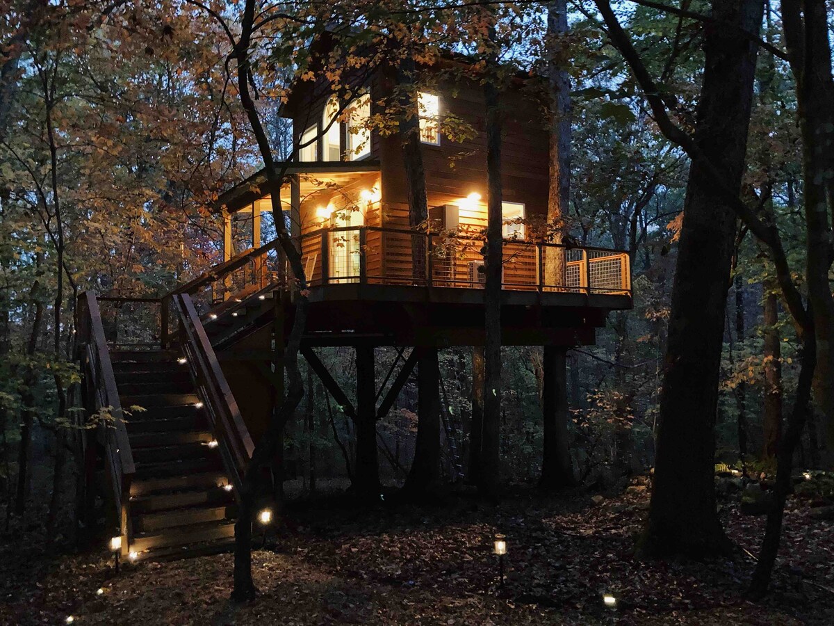 Entfliehe einem ruhigen Rückzugsort am Hang im Wald, wo die Melodien von Nutztieren und Wildvögeln einen beruhigenden Soundtrack schaffen. Unser stilvoller und gemütlicher Bungalow verfügt über drei charmante Veranden, die eine ruhige Reflexion einladen. Genieße eine einfach zu bedienende Komposttoilette im Innenbereich. Gönn dir unsere verjüngende Sauna (+ 40 $) und wandere durch unseren Garten und entlang bewaldeter Wege. Obwohl in der Nähe der Stadt und der I-40 gelegen, verspricht dieser Rückzugsort eine erholsame Flucht in die Ruhe der Natur und ein durchdachtes Leben.