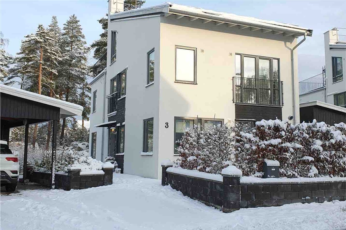 Welcome to our new (2023) ecological house with a calm and clean character with a ceiling height of 5 meters. The house is characterized by a space of air in combination with a large size photography collection on the walls. Dining area for the whole family on the wooden deck outside. Free parking with charger for 1 car. Quiet neighborhood about 5 km from Stockholm town, a 10 min walk to the subway station and 11 minutes ride to town. It is about 1 km to Lake Mälaren's natural areas and beaches