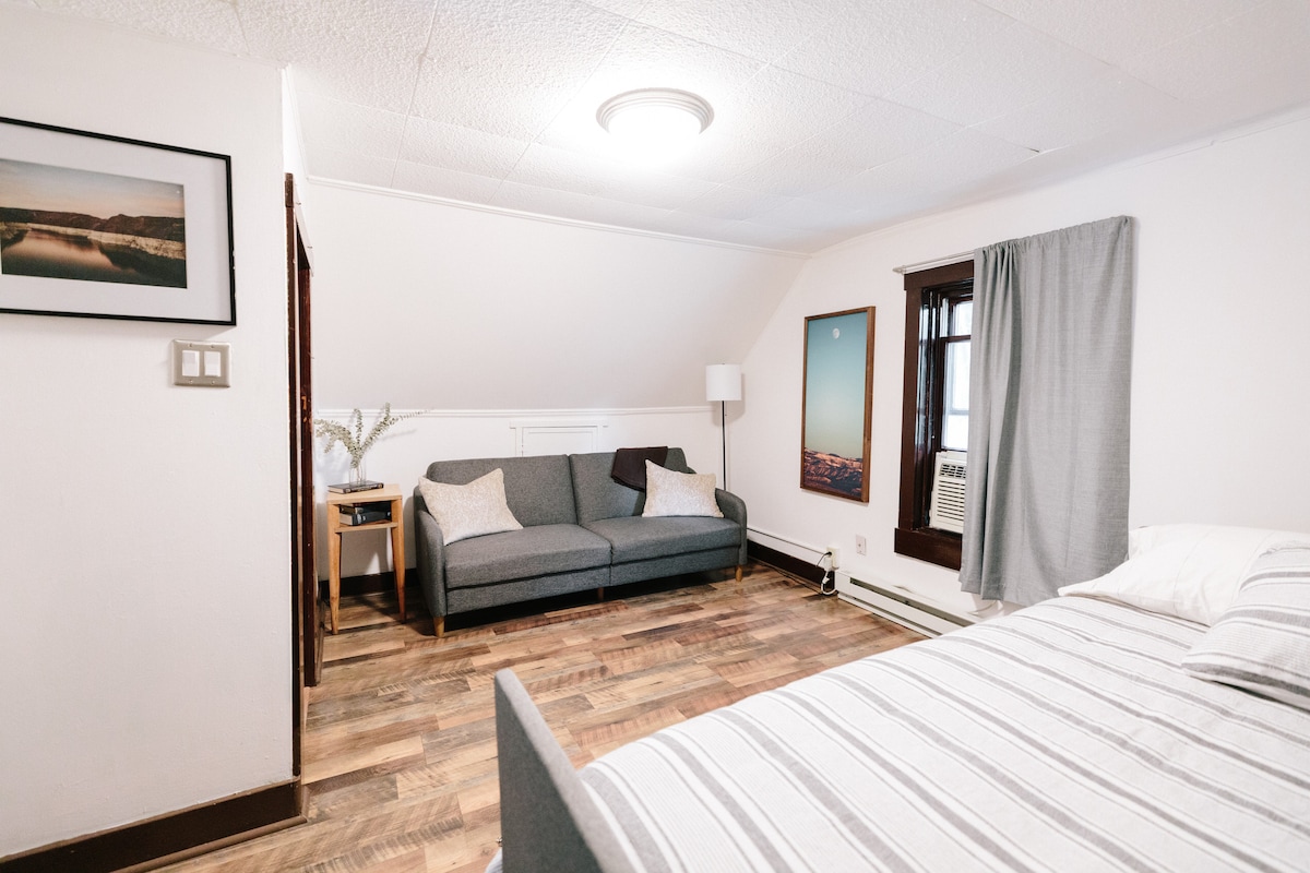 Übernimm die Penthouse-Suite im 3. Stock eines historischen viktorianischen Queen-Anne-Hauses. Die Suite verfügt über ein eigenes Badezimmer und eine Küchenzeile. Die Gäste haben auch Zugang zu den eklektischen Gemeinschaftsbereichen im ersten Stock, die mit antiken Möbeln und Kunstwerken geschmückt sind. Nur wenige Gehminuten von der Innenstadt von Urbana, Geschäften, Restaurants und dem Nachtleben entfernt. 1/2 Meile vom U of I Campus entfernt.