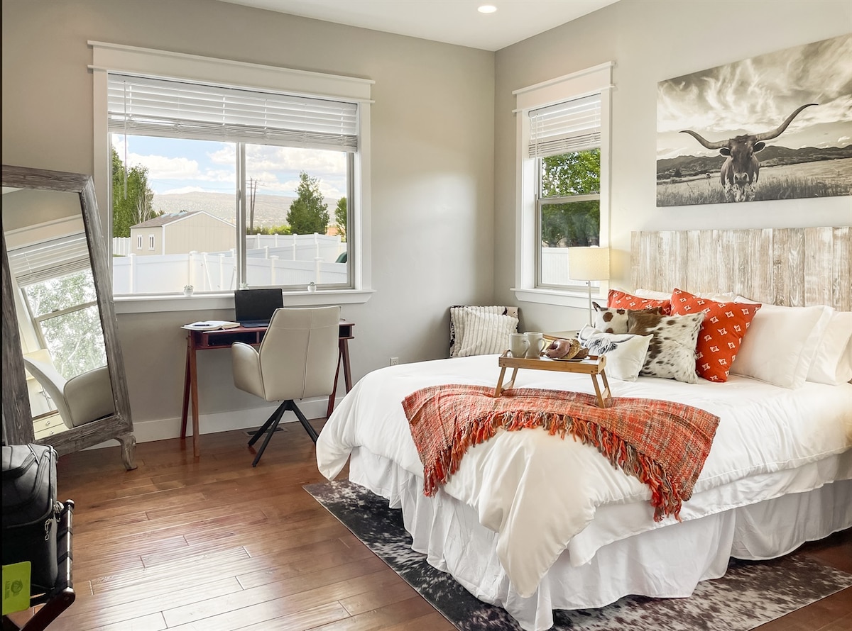 Der ideale Bergurlaub in Utah! Ein geräumiges Haus mit 4 Schlafzimmern, perfekt für Familien, Remote-Mitarbeiter und jede Gruppe, die einen malerischen, komfortablen und bequemen Zugang zu Utahs besten Abenteuern sucht. Mit (2) gemütlichen Wohnzimmern, einem privaten Büro, Schreibtischen/Monitoren in jedem Schlafzimmer, einer Garage für 2 Autos, die für 6-8 Fahrräder, 8+ Skier/Boards und mehr ausgestattet ist, werden alle Persönlichkeiten gedeihen! Oh & vergiss nicht, eine private 4-Personen-Sauna, einen Grill im Freien + einen Feuerstellenbereich zu genießen, der sich über einen geräumigen eingezäunten Hof erstreckt.