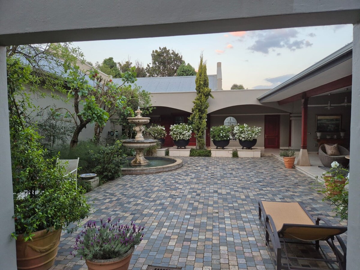 The Courtyard at La Loggia is a home on the beautiful Eaglecrest Wildlife Estate, 2km from the N3, & 10km from Nottingham Rd. This is a popular choice for people attending weddings in the Midlands, or just wanting a peaceful getaway. There are 3 separate en suite rooms available. Suites can be booked individually or together. We are 2km from both Providence & Brahman Hills, 1km from The Gallery, & 5km from both Fordoun and Netherwood. The 75ha estate is gated, secure, has fishing dams & trails