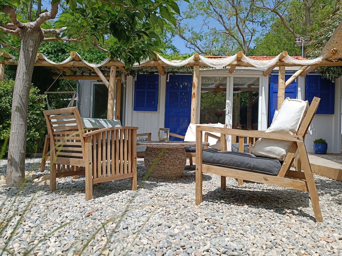Ein geschmackvoll renoviertes Mobilheim auf einem 2000 Quadratmeter großen Grundstück. - Dusche. - WC. - Qualität Litterrie. - Ausgestattete Küche. - Klimaanlage. - Babybett - Bouleplatz - Grill - Kinderschaukel - Rutsche für Kinder - Trampolin 3m60 Durchmesser - Kinderkabanne - SPA ( gegen Gebühr ) - Möglichkeit der Anmietung eines 4x4-Fahrzeugs mit allen Optionen mit Vorzugspreis je nach Dauer Ihres Aufenthalts.
