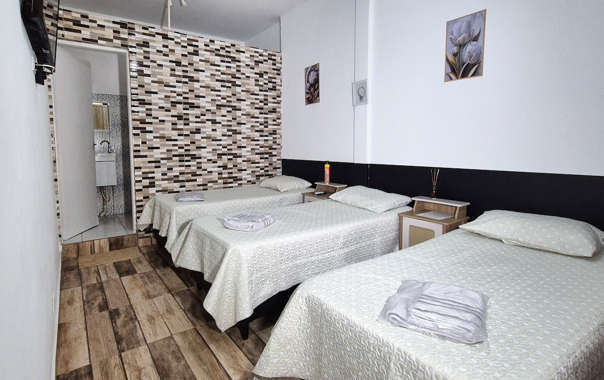 Komfort, Privatsphäre und Lage! Unsere komplette und gemütliche Wohnung ist perfekt für diejenigen, die ein funktionales vorübergehendes Zuhause suchen, mit allem, was sie für einen ruhigen Aufenthalt benötigen. Sie befindet sich im zweiten Stock (ohne Aufzug) einer Familienwohnung, in einer einfachen und beliebten Nachbarschaft, in der Nähe des Zentrums, mit Parkplatz. Unabhängiger Eingang und Schlüssel in einem geheimen Safe. Die Stadt bietet bequem Platz für diejenigen, die zur Arbeit, zum Studium oder zur Freizeit kommen. Ausgestattete Küche, Internet, bequemes Bett und Dusche.