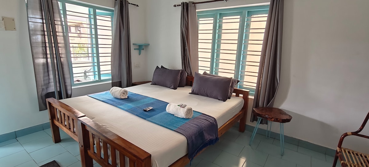 Peak Paradise ist ein ruhiges Refugium, das auf der atemberaubenden Südklippe von Varkala, Kerala, thront. Unser geräumiges Zimmer bietet einen atemberaubenden Blick auf das Arabische Meer, das direkt von deinem Fenster aus sichtbar ist. Es ist für Komfort und Entspannung konzipiert und verfügt über eine vollautomatische Badewanne mit anpassbaren Lichtern, Klimaanlage und eine ruhige, stilvolle Atmosphäre. Ganz gleich, ob du für einen romantischen Urlaub oder einen Solo-Rückzug hier bist, du wirst es lieben, in der Nähe des Strandes, der Klippen-Cafés und der lokalen Sehenswürdigkeiten zu sein, die alle zu Fuß erreichbar sind.