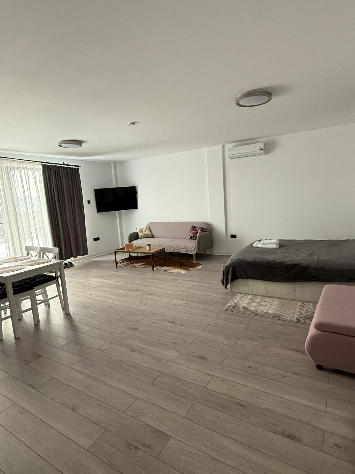 Wir laden dich ein, ein Premium-Erlebnis in der exklusivsten Gegend von Vaslui zu genießen, nur wenige Schritte vom Copou Park entfernt. Die Suite verfügt über ein elegantes Schlafzimmer, kombiniert mit einem hellen Wohnzimmer, einem Arbeitsbereich, einer voll ausgestatteten Küche und einem Balkon mit einem einzigartigen Blick auf die Stadt von der 3. Etage des Gebäudes. Schnelle WLAN-Verbindung, Premium-Matratzen, schneller/Online-Check-in und kostenloses Parken. Ideal für: Geschäftsreisende, reisende Fachkräfte, Kurz- oder Mittelaufenthalte.