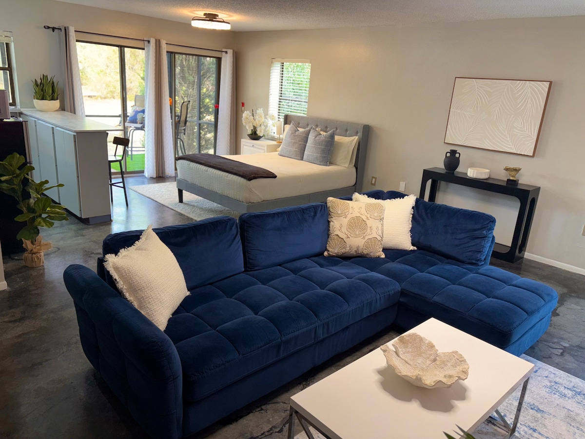 Halte es an diesem ruhigen und zentral gelegenen Ort einfach. Neu renoviertes Doppelzimmer mit Kingsize-Doppelbett in South Venice. Minuten zum Strand, Radweg, Tennis-/Pickleballplätze, Einkaufsmöglichkeiten. Zwei wunderschön eingerichtete Suiten sind komplett auf deinen Komfort ausgerichtet. Jede befindet sich auf gegenüberliegenden Seiten des Hauses, wobei das geräumige Wohn- und Esszimmer das Herz ist. Im Freien findest du einen beleuchteten Sitzbereich und einen Grill, der alle mit einem komplett eingezäunten Garten umgeben ist. Wir bieten Liegestühle und ein Zelt an.