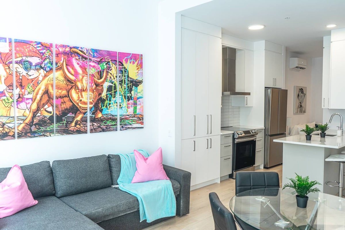 Vivez l'intimité urbaine dans ce condo moderne et spacieux situé au 11e étage. Profitez d'une piscine chauffée sur le toit, d'un espace BBQ et d'un foyer extérieur. Savourez la vue et les couchers de soleil à couper le souffle. Ne manquez pas cette chance exceptionnelle de vivre une expérience inoubliable. CITQ: 311970 Vous voyagez en groupe ? Sachez que nous possédons d'autres unités dans le même bâtiment. Voici les liens pour y accéder. airbnb.fr/h/le1006 airbnb.fr/h/penthousele1108