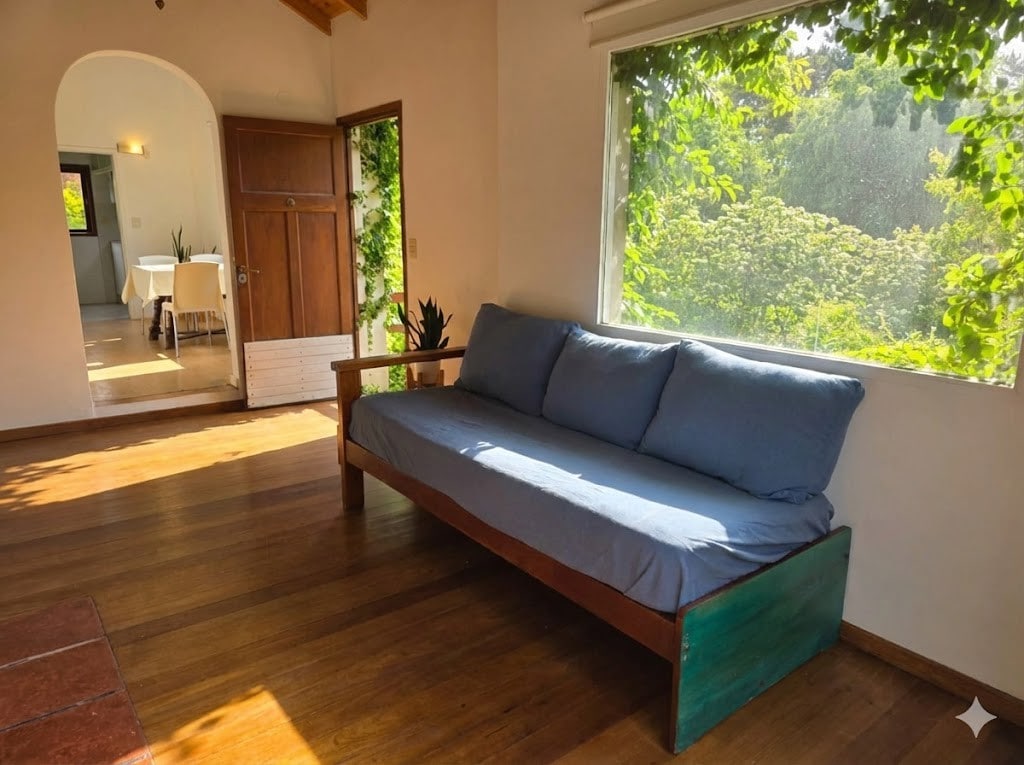 Duplex moderno remodelado en 2023, rodeado de verde y a tan solo 100 metros de la playa. En planta baja living con sillón y TV, toilette, comedor y cocina integrada totalmente equipada con vajilla y electrodomésticos, patio privado con living de exterior. En planta alta 1 habitación principal, baño completo y habitación secundaria con 3 camas simples. Condominio cerrado con amplio parque, wifi por fibra óptica, cocheras privadas y espacios comunes de parrilla y quincho.