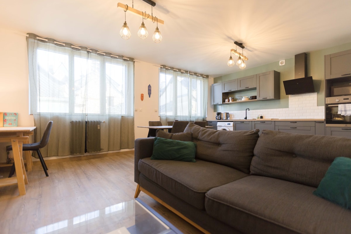 Gemütliche Wohnung in der Nähe von Geschäften und 10 Minuten zu Fuß vom Zentrum entfernt. Voll ausgestattete und komplett renovierte 2-Zimmer-Wohnung von ca. 50 m2 Maximale Kapazität: 4 Erwachsene Ausgestattete Küche, Mikrowelle, Backofen, Induktionskochfeld, Senseo-Maschine, Duschbad mit Handtuchtrockner. Schlafgelegenheit: Schlafzimmer, Doppelbett 140 cm. Wohnzimmer Zustellbett (Schlafsofa 140 cm) für 2 Erwachsene Kleines Extra auf Anfrage: abschließbarer Keller, ideal für die Aufbewahrung Ihrer Fahrräder während Ihres Aufenthalts.