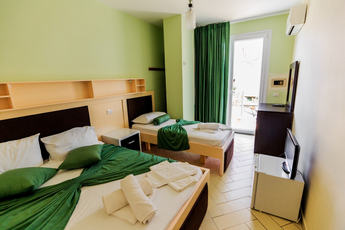 Entfliehen Sie in die blauen Adria und das Ionische Meer für absolute Entspannung in unserem Azur Room. Genießen Sie den Luxus eines privaten Bereichs, der Komfort und Modernität des Hotels verbindet. Mit Blick auf einen Pinienwald und direkt am Strand bietet das Gebäude einen direkten Zugang zum Sand und befindet sich in der Nähe von: - Hafen von Vlora - 1.2 km - Lungomare - 1,5 km - Einkaufsviertel - 1,5 km - Unabhängigkeitsmuseum - 1,5 km - Altstadt - 3 km - Kloster Zvernec - 7 km - Narta-Lagune 🦩 - 18 km