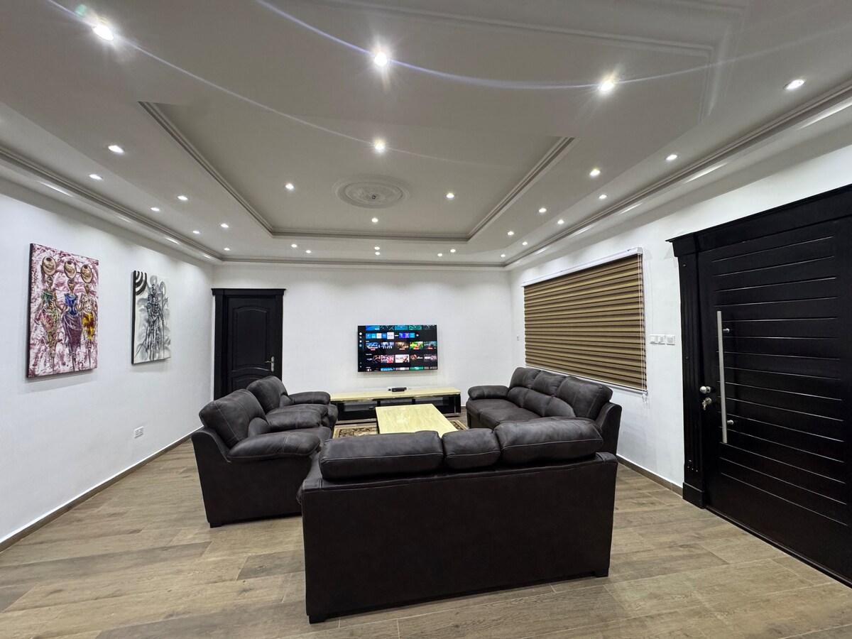 Die Santa Monica Home Lodge hat eine ruhige und gemütliche Umgebung mit herrlichem afrikanischem traditionellem Deko, das afrikanischen und internationalen Luxusstandards entspricht. Unsere Wohnung bietet Platz für 5 Gäste. Sicherheit und Komfort für Gäste haben für uns Priorität für uns Priorität. Wir interagieren mit unseren Gästen, um ihre beste Zufriedenheit zu kennen. Unsere Selbstversorger-Küche ist komplett ausgestattet und eingerichtet, mit einem Koch zur Verfügung.