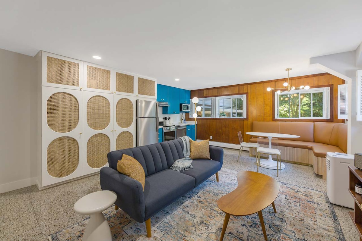 Du bist eingeladen, in unserer Gästesuite mit dem Themen-Kingsize-Bett-Schlafzimmer sowie einem separaten Wohnzimmer, einem Badezimmer, einer Küche und einer Waschküche vom Haupthaus zu übernachten. Genieße besondere Annehmlichkeiten wie kostenlosen Keurig-Kaffee, eine Auswahl an Tees sowie raumverdunkelnde Vorhänge und ein Telefonladegerät am Bett. Wir befinden uns in einer etablierten Nachbarschaft, nur wenige Gehminuten von Restaurants und Einkaufsmöglichkeiten entfernt.