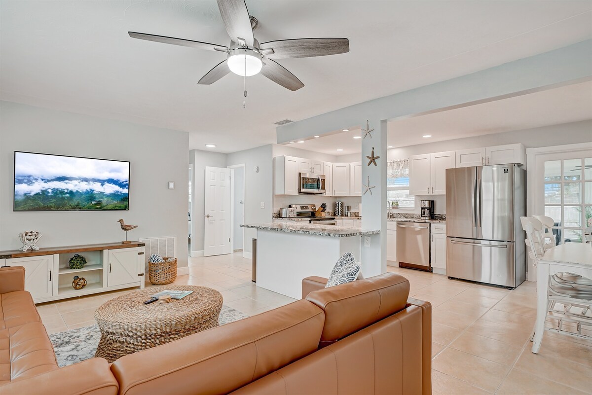Genieße unseren neu renovierten Pool! Unser aktualisiertes Zuhause ist ideal gelegen, nur wenige Minuten von lokalen Stränden, Restaurants und Unterhaltungsmöglichkeiten entfernt, was es zu einem perfekten Ausgangspunkt für deinen Besuch in Florida macht. Der Hinterhof verfügt über einen neu renovierten beheizten Pool, eine Außendusche und eine abgeschirmte Terrasse. Unser helles Wohnzimmer bietet einen komfortablen Raum, um sich nach einem langen Tag zu entspannen, und unsere Küche ist voll mit Kochgeschirr, Utensilien und einer Kaffeestation für deinen Komfort ausgestattet. Aktualisierte Pool-Bilder folgen in Kürze!