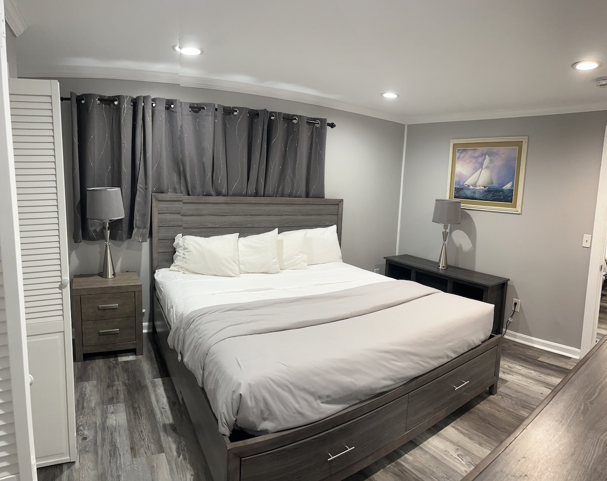 Fabelhafte neu dekorierte Suite in einem Haus aus dem Jahr 1957 an einem privaten Teich in der Nähe von Watch Hill, RI. Privater Eingang mit Miniküche, Kühlschrank, Mikrowelle, tragbarem Induktionskochfeld, Toaster, Kaffeemaschine – alles außer der Küchenspüle! Bitte beachte: Es gibt weder ein Spülbecken noch einen Backofen. Ensuite-Badezimmer mit neuen Handtüchern, Bademänteln, Bettwäsche und Bettwäsche. Außendusche (zusätzlich zu einer Innendusche!), Grill, Loungebereich. In der Nähe von Stränden, Musik, Essen, Mystic CT Attraktionen. Toller Ort zum Entspannen.