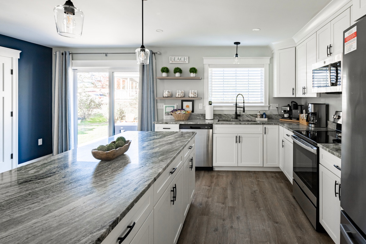 Wenn du noch nie in Wells übernachtet hast, mache deinen ersten Aufenthalt in der ältesten etablierten Unterkunft in Wells, die bis 1604 zurückreicht, aber für die heutigen modernen Bedürfnisse mit WLAN, Streaming, Whirlpool, Grill, Gartenmöbeln und Hängematte aktualisiert wurde, alles nur eine kurze Fahrt vom Wells Beach entfernt, in einer ruhigen Gegend an einer Sackgasse. Lass dich vom Rauschen des Wasserfalls und des Flusses Webhannet in den Schlaf wiegen, während sie durch den Hinterhof fließen, und sieh dir das Fundament der historischen Mühle und des Sägewerks an.