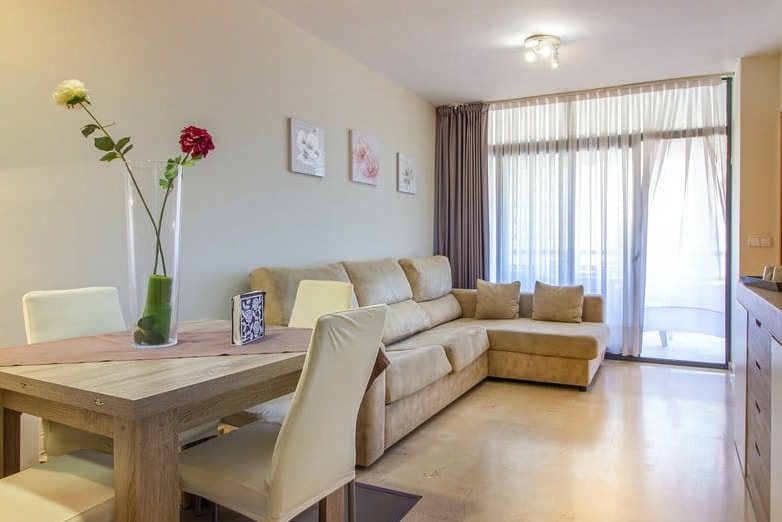 3-х. Zimmerwohnung Strand von Poniente in 50 Metern. Für die Familie bis 4 Personen (2 Erwachsene + 2 Kinder). Vom Eigentümer. Die Wohnung befindet sich in der Nähe der malerischen Promenade des besten Strandes in Benidorm - Pontiente - nur wenige Gehminuten von vielen Cafés, Restaurants und von der Bushaltestelle am Strand gibt es einen direkten Bus zum Zoo und Wasserpark. Die Wohnung besteht aus 3 Zimmern: ein großes Wohnzimmer + 2 Schlafzimmer (Kinderzimmer mit einem Etagenbett)