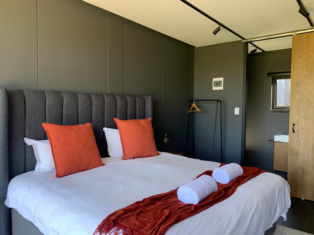 Our goal is to have you as close to nature as possible, while having luxury to enjoy the experience. We offer a 2 bedroom container cabin and one large bathroom overlooking fynbos nature. The lounge area connected to a small kitchen extends over a deck that's equipped with a covered braai and dinning area. The main deck extend to the woodfire hot-tub and a deck-hammock to make sure you engage with the stars. A high profile / high clearance vehicle is required - (SUV / Crossover / Bakkie).
