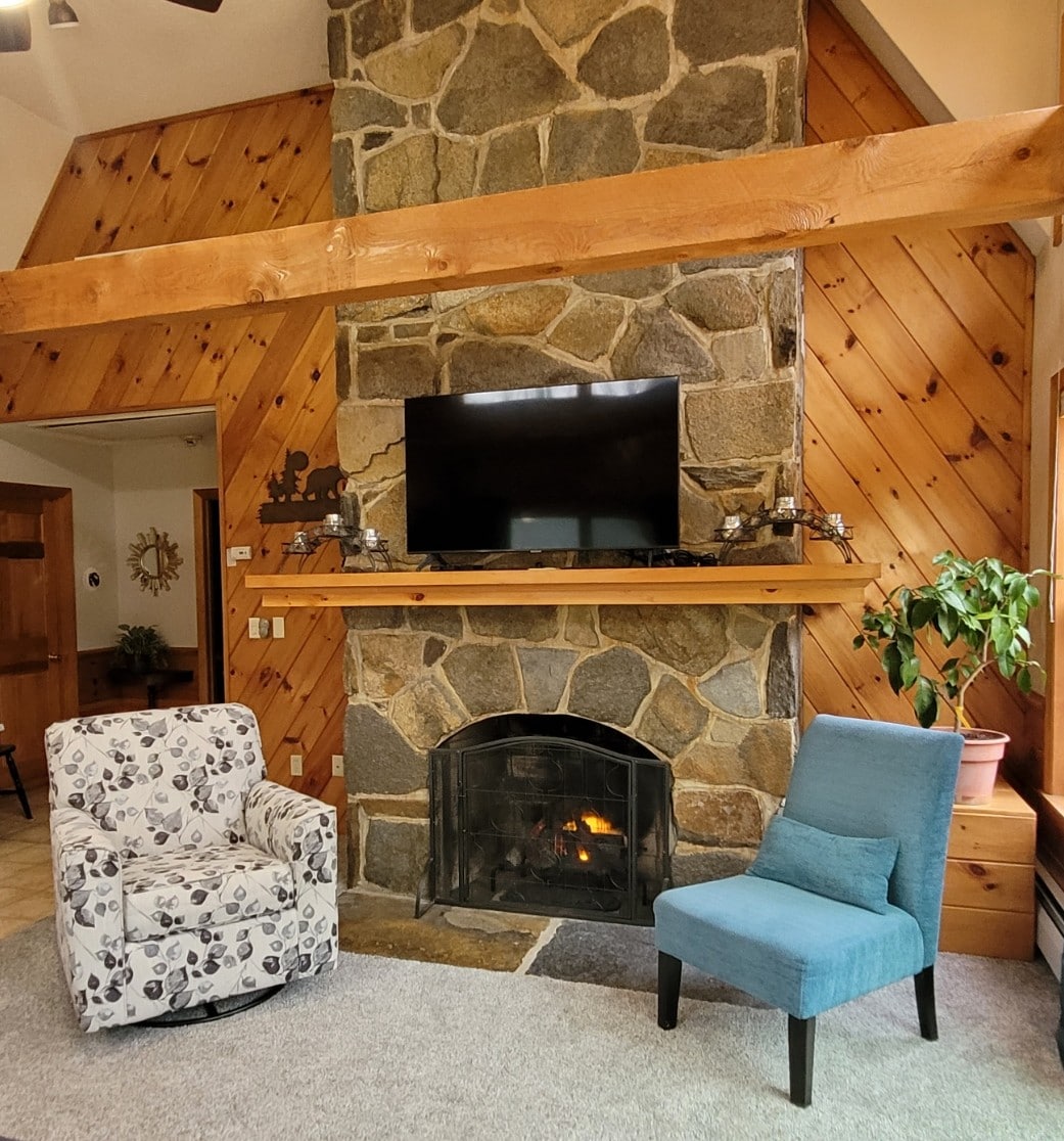 „Sugar Maple“: rustikale Blockhütte mit Kamin