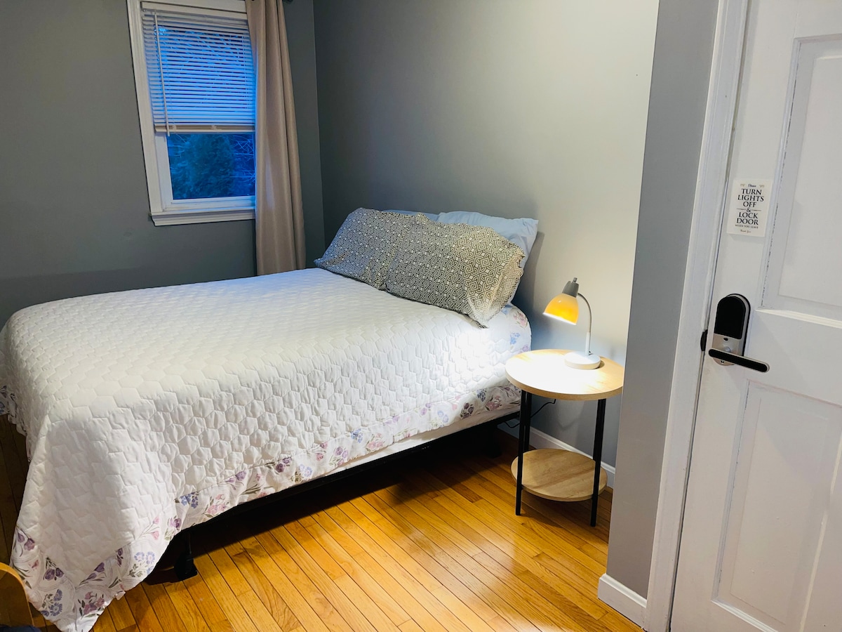 Großes Privatzimmer im Keller eines Einfamilienhauses. Das Haus befindet sich in günstiger Lage weniger als eine Minute von der Route 3 auf halbem Weg zwischen Boston und Cape Cod. Das Zimmer verfügt über ein großes Bett und eine Euro-Liege, mit der man sich entspannen und fernsehen oder zum Schlafen zurückkehren kann. Es gibt eine Küchenzeile im Zimmer, die über einen Kühlschrank mit Gefrierfach, eine Mikrowelle und einen Keurig verfügt. Das private Bad befindet sich im Schlafzimmer. Kühle dich in den Sommermonaten im Pool ab.