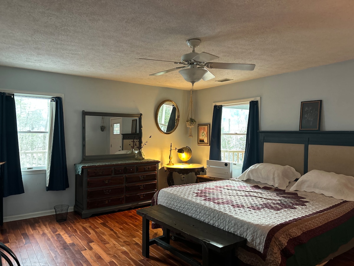 Renoviertes Bauernhaus aus den 1950er Jahren, auf 30 Acres, 8 Meilen von West Jefferson entfernt. Malerische Umgebung mit Gemüsegarten und Hühnern und herrlichem Blick auf den Mount Jefferson von deiner Veranda aus! Lebe wie ein Einheimischer in diesem ruhigen Haus und Gelände, das seit 1802 von derselben Familie liebevoll gepflegt wird. Ein Aufenthalt bei Evvie's View ist die wahre Ashe County-Erfahrung! Ruhiger Rückzugsort, der nah genug an der Stadt liegt, während er abgelegen genug für einen erholsamen Besuch ist. Einfacher Zugang
