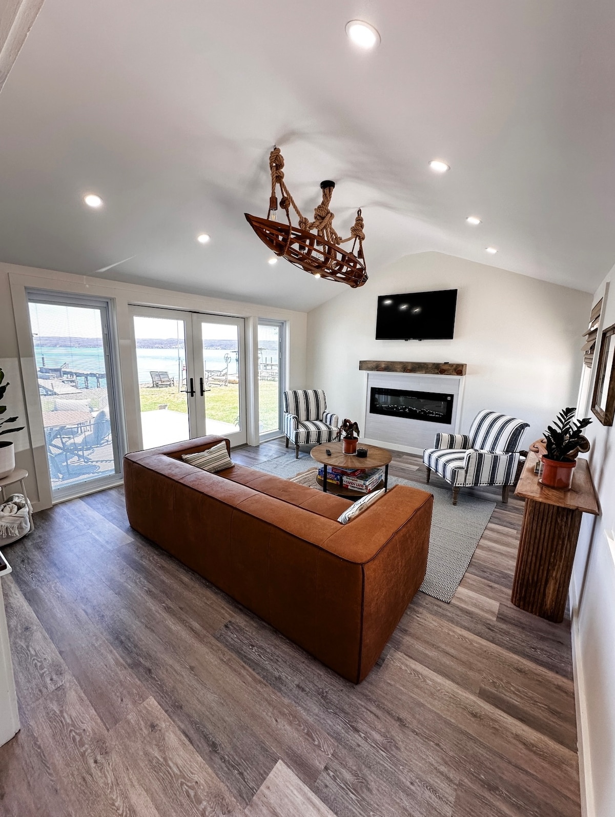 Ein wahrer Zufluchtsort... friedlich, ruhig und majestätisch. Das Haus liegt direkt am See mit herrlichem Blick auf den Seneca Lake. Große Fenster mit Blick auf den See vom Wohnzimmer und dem vorderen Schlafzimmer. Dieses freistehende Einfamilienhaus befindet sich in einer Sackgasse, die auf den Nahverkehr beschränkt ist. Dieses ganzjährig bewohnte Haus mit 2 Schlafzimmern und 1 1/2 Badezimmern bietet dir alles, was du für deinen nächsten Urlaub benötigst. Das Haus ist perfekt für 2 Paare oder eine vierköpfige Familie. Bonusraum über dem Bootshaus mit einem ausziehbaren Sofa.