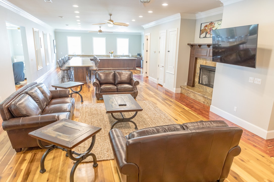 Willkommen im Lakefront Haven! Diese Unterkunft bietet eine nahtlose Mischung aus Komfort und Luxus und bietet einen Rückzugsort für einen Kurzurlaub am See. • Anwesen am See + schöne Aussicht • Whirlpool • Fantastischer Gemeinschaftspool für die heißen Sommertage • Abgeschirmte, beheizte Veranda mit TV und Soundsystem • Kajak, 2 Paddleboards und Peleton werden bereitgestellt • Terrasse mit Gasweber-Grill • Feuerstelle im Hinterhof mit Stühlen • Gut ausgestattete Küche • Weniger als 2 Meilen vom Twin Creeks Marina entfernt • Zu Fuß zum Downtown Square
