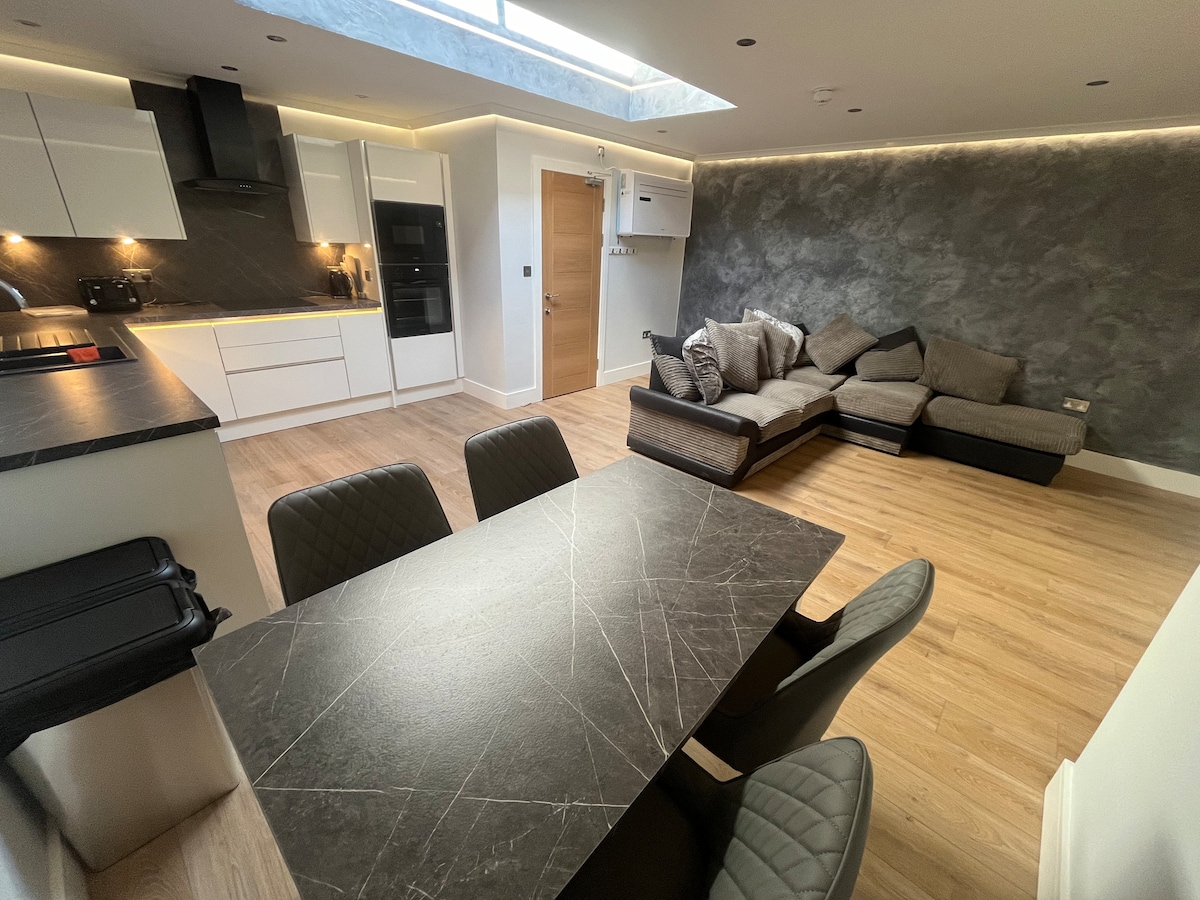EXKLUSIVE PENTHOUSE-LOFT-WOHNUNG MIT MEERBLICK Individuell gestaltete Penthouse-Wohnung, Meerblick, Parkblick, Balkon, Holzfeuer, 200-Zoll-Kino. Blackpools erstklassige Executive-Wohnung im Loft-Stil. Genieße ungestörten Meer- und Parkblick von der Lounge/vom Balkon aus. Designerküche und Badezimmer mit ebenerdiger Spa-Dusche. Volles Surround-Sound-200-Zoll-Kinoerlebnis. Echtes Holzfeuer und Holzböden für ein einzigartiges Loft-Erlebnis. Unbegrenztes 5GWLAN, schlüssellose Schlösser, Zentralheizung und EV-Ladestation.