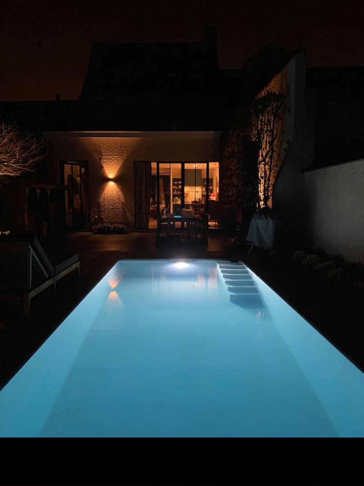 Tritt direkt von deiner Terrasse in den 40 m² großen Pool und fühl dich wie zuhause. Du übernachtest in unserem stilvollen 54 m² großen Poolhaus mit einem gemütlichen Sitzbereich, großen Fenstern, einer Bar, einer Außenküche und einem Essbereich. Zünde den Ofen an, entspanne dich und genieße gemütliche Abende mit Blick auf den Whirlpool und den Pool. Durch unsere zentrale Lage sind Gent, Antwerpen und Brügge bequem zu erreichen – sogar mit dem Zug. Kehre nach einem Tag zurück zu völliger Ruhe und Frieden in unserem großen 2000 m² großen Garten. Privater Parkplatz