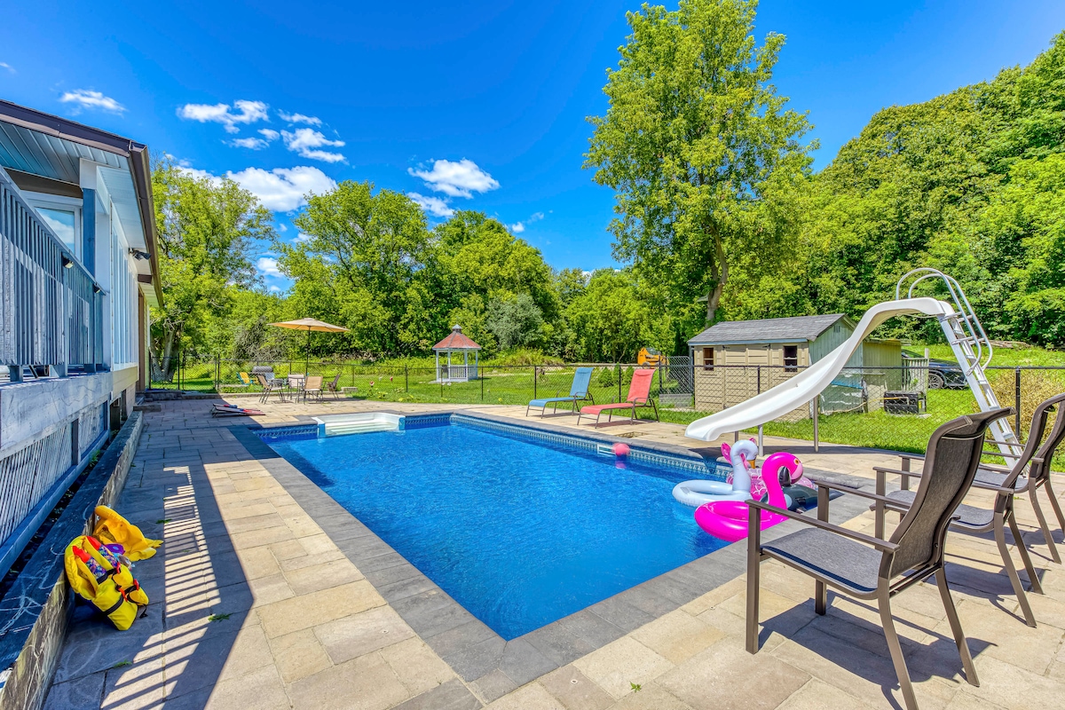 Willkommen im alten Kirchenhaus! Dieser luxuriöse Rückzugsort auf dem Land verbindet historischen Charme mit modernem Komfort. Mit fünf Schlafzimmern, einer offenen Küche und einem Wohnbereich sowie Platz für 10 Personen ist es perfekt für Familienfeiern. Genieße die Sauna, den oberirdischen Pool (Canada Day - Labor Day), die Feuerstelle und die Terrasse in der ruhigen Landschaft. Schöne Buntglasfenster verleihen diesem ruhigen Kurzurlaub eine einzigartige Note. Buche noch heute deinen Aufenthalt und erlebe den friedlichen Charme dieses einzigartigen Juwel auf dem Land!