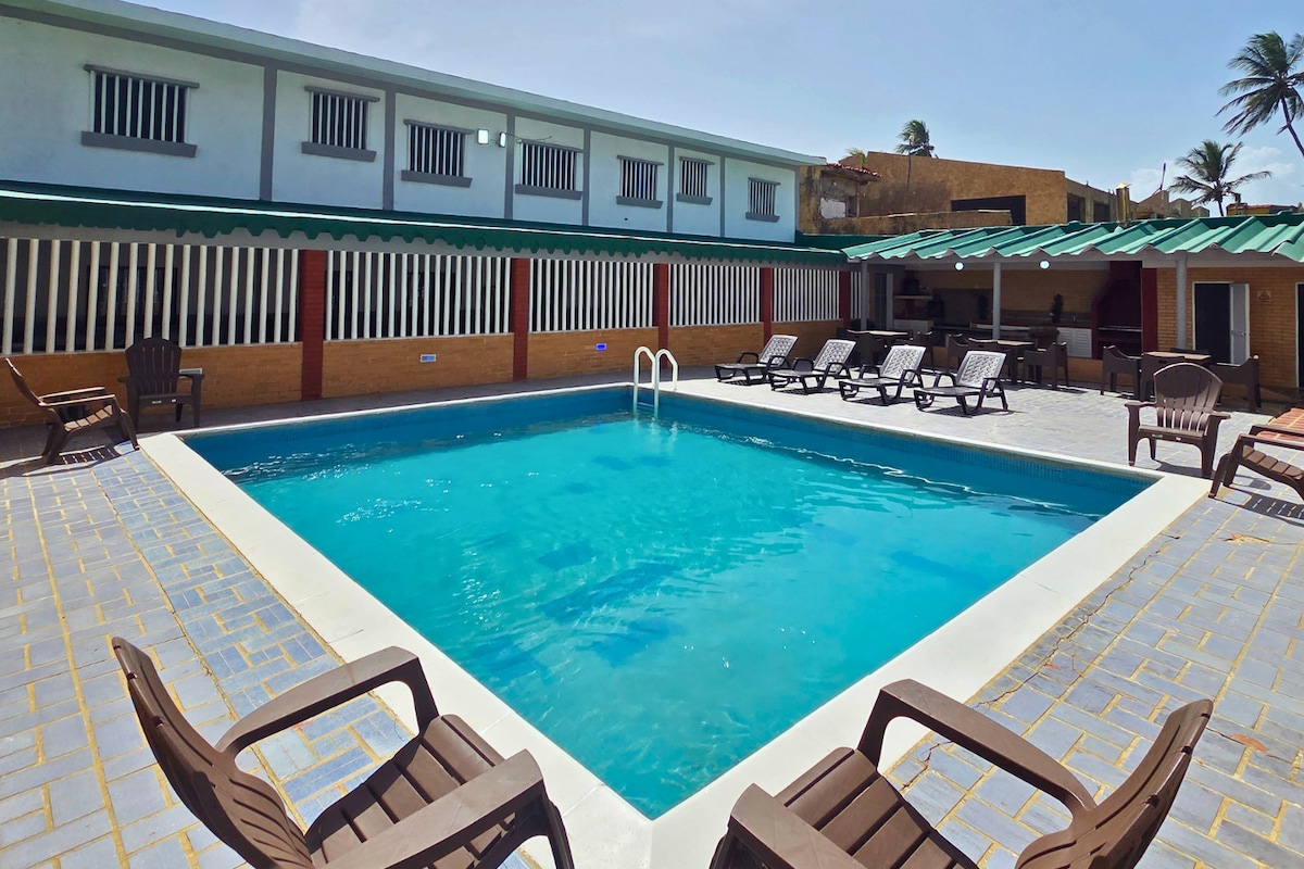 No Airbnb Fees: What You See Is What You Pay! 🌊 Relax with ocean views! Enjoy 2 bedrooms: one with a king-size bed and other with a bunk bed and a pullout single bed. The space features 2 bathrooms with hot water, an equipped kitchen, Wi-Fi, TV, and 3 air conditioners. The gated community includes a swimming pool, BBQ areas, direct beach access, and private parking. Safe and secure, with a power generator available on weekends and holidays. 📅 Book now and enjoy an unforgettable getaway! 💙