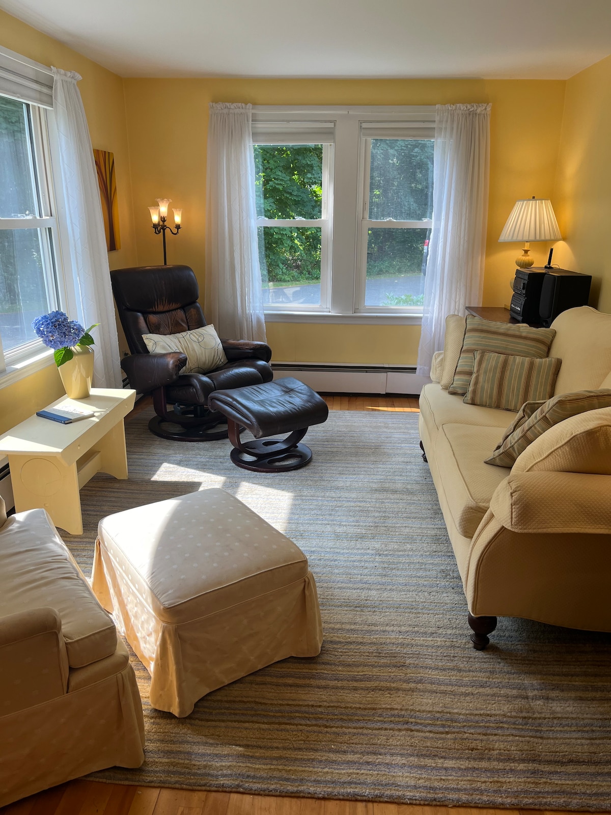 Das traditionelle Cape, in dem sich diese Wohnung im ersten Stock befindet, wurde vor etwa 200 Jahren erbaut und liegt auf einem Hügel über dem Royal River, nur wenige Schritte von Restaurants, Wanderwegen und der Uferpromenade entfernt. Sie wurde gründlich renoviert und verfügt über so ziemlich alle Annehmlichkeiten von zu Hause – einschließlich einer voll ausgestatteten Küche mit Geschirrspüler, einem Holzofeneinsatz, einer ganz natürlichen Matratze (super bequem) und einem Badezimmer mit einer Klauenfußwanne. Oh, und wenn du eine dritte Person mitbringst, lass es mich wissen – und ich werde das Zusatzbett aufstellen.