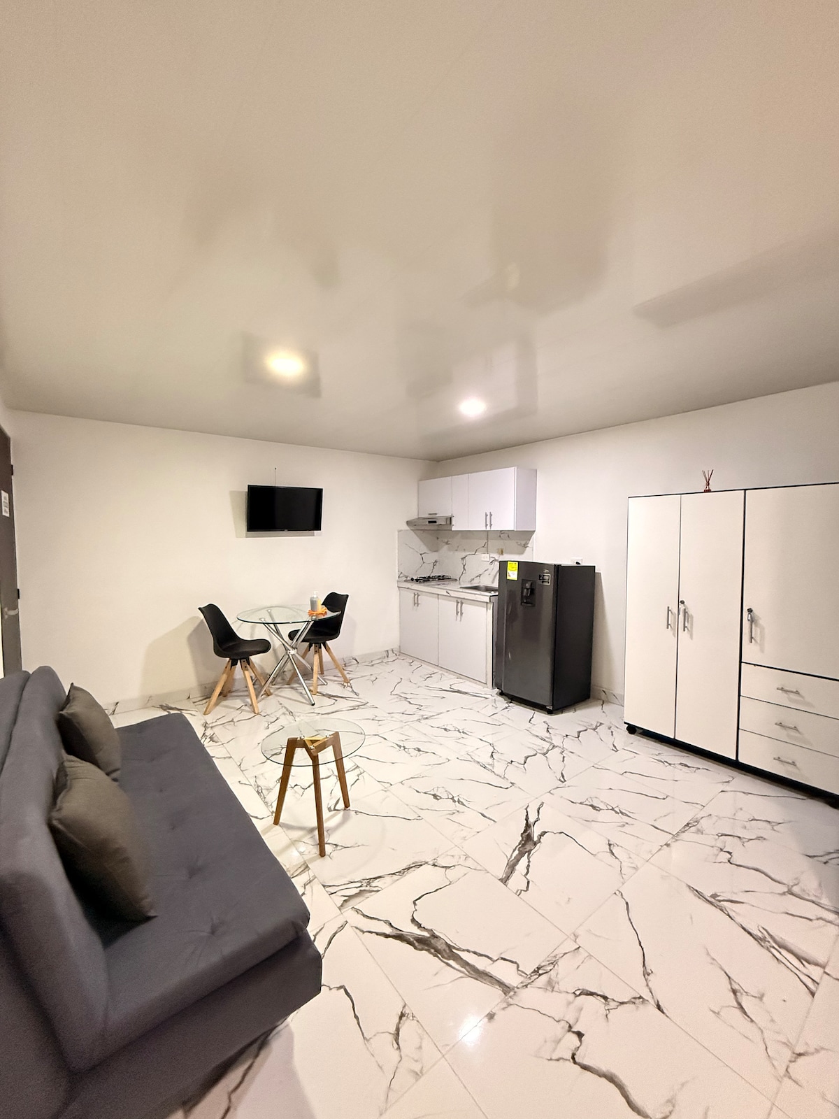 Genieße den Komfort und die Ruhe in diesem gemütlichen Aparttaestudio, das 20 Minuten vom Flughafen und 15 Minuten vom Bodenterminal entfernt liegt, was es zu einem perfekten Ausgangspunkt für eine Erkundung der Stadt macht. Supermärkte, Fitnessstudios und eine schöne gastronomische Gegend sind zu Fuß erreichbar. Dieser Raum verfügt über ein Doppelbett, einen Kühlschrank, eine Klimaanlage, einen TV, eine ausgestattete Küche, einen Kleiderschrank, ein Badezimmer und einen schönen Blick auf die Berge.