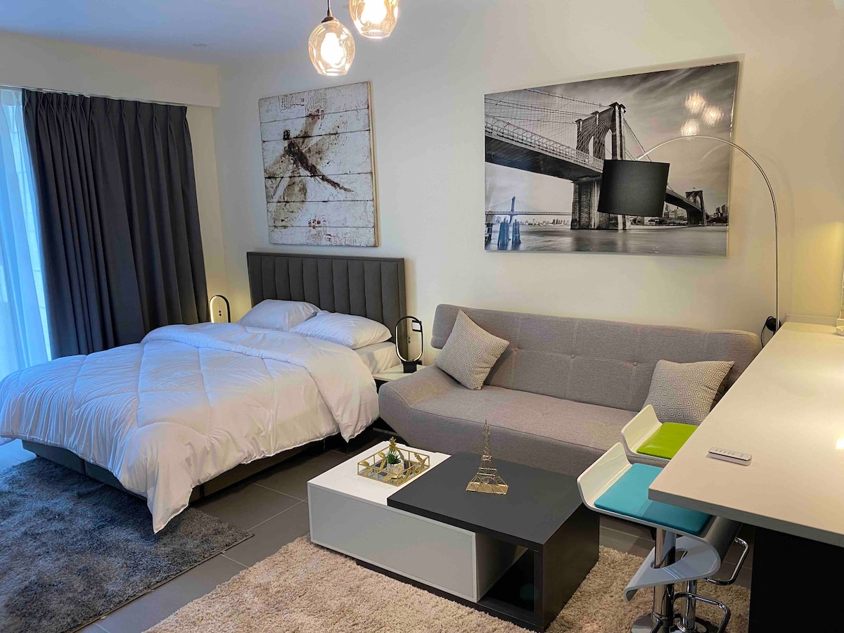 Luxury studio located in the Boulevard in Abdali area, which is considered one of the most prestigious parts of Amman. With the studio being in the heart of the city center, visitors have the opportunity to experience the luxury of Amman yet have access to all the attractions and historic places, either by foot or easy access through very afforable transportation (local taxi, Uber, Careem, and other local applications).