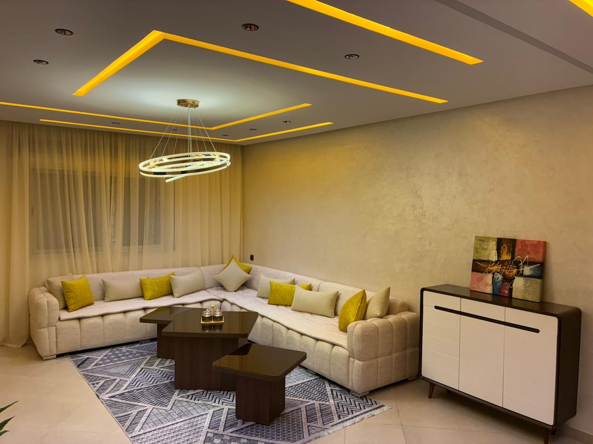 Genieße einen ruhigen Aufenthalt, bei dem alles nur wenige Schritte entfernt ist und kein Auto benötigt wird. Gehe zum Flughafen, schnapp dir unten einen Kaffee oder speise in Top-Spots in Tetouan wie McDonald's, Little Mama, Picks und La Dorada. Die Wohnung ist ruhig, ohne Straßenlärm oder Bauarbeiten, perfekt für einen erholsamen Schlaf. Du bist nur 10 Minuten vom Strand Marina Smir und der alten Medina, 15 Minuten von Ceuta, 45 Minuten von Tanger und 1 Stunde von Chefchaouen entfernt. Voll ausgestattete Küche, TV in jedem Zimmer, privater Parkplatz und Cafés im Erdgeschoss.