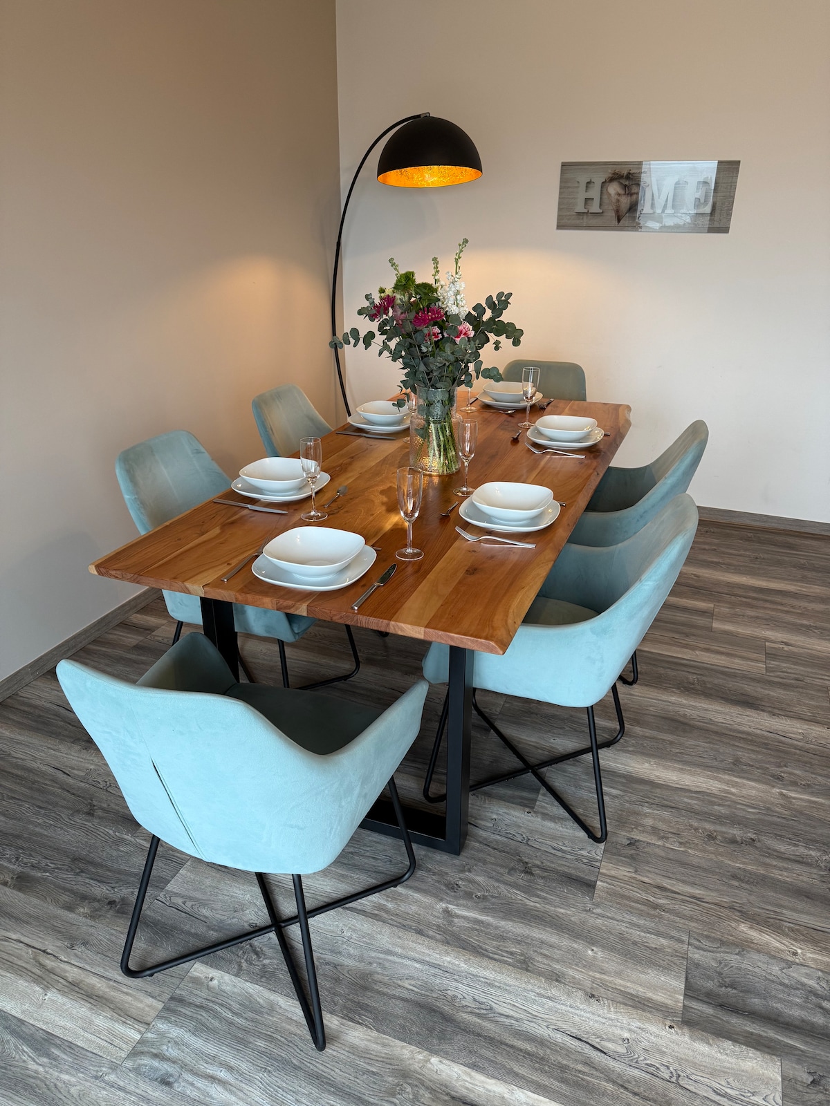 Die modern eingerichtete Wohnung mit einer voll ausgestatteten Küche incl. Kaffeevollautomat hat einen schlichten und nicht überladenen Stil. Der Balkon lädt zur Entspannung in der Abendsonne ein. Um die beliebtesten Serien auch außerhalb der eigenen vier Wände nicht verpassen zu müssen, steht Netflix, Disney+ und RTL+ zur freien Verfügung.